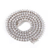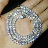 This 4mm, silver Single Row CZ Tennis Necklace provides a smaller, more refined look counterpart. Each necklace uses AAA, handset 1 ct Lab Diamond stones to provide a classic look. Available in 16", 18",20". inches